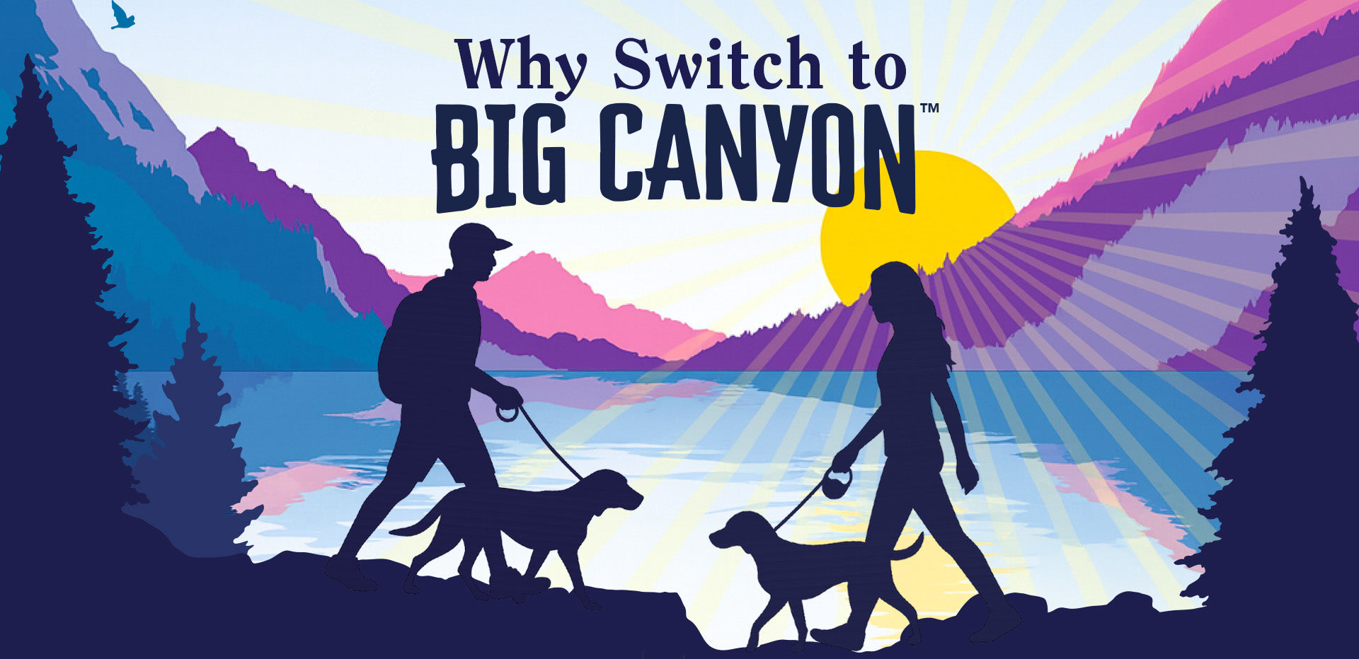 Big Canyon provides the best nutrition with a taste dogs love, resulting in healthier dogs, happier dogs and more joyful pet parents. Because Big Canyon uses sustainably sourced ingredients and packaging while also giving back to non-profit organizations, your switch to Big Canyon helps create a better world.
